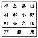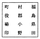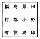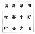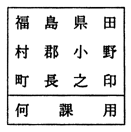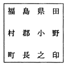 町役場の印 | 別図1 | 篆書体 | 方30ミリメートル | 総務課 | 縦書文書用 | 1 | |