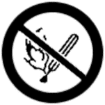 火気厳禁である旨の表示 | ![]() | 記号は黒、斜めの帯及び枠は赤、地は白 |