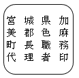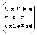 | 役場印 | 方21ミリメートル | ![]()  | 総務課長 | 1 | |
