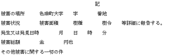 (6) 巡視中又は巡視後に町有林野に異状を発見したる場合は速やかにその状況を町長宛報告する。