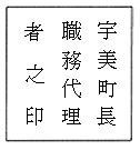 宇美町長職務代理者之印 | てん書 | 正方形 | 18 | ![]() | 総務課長 |